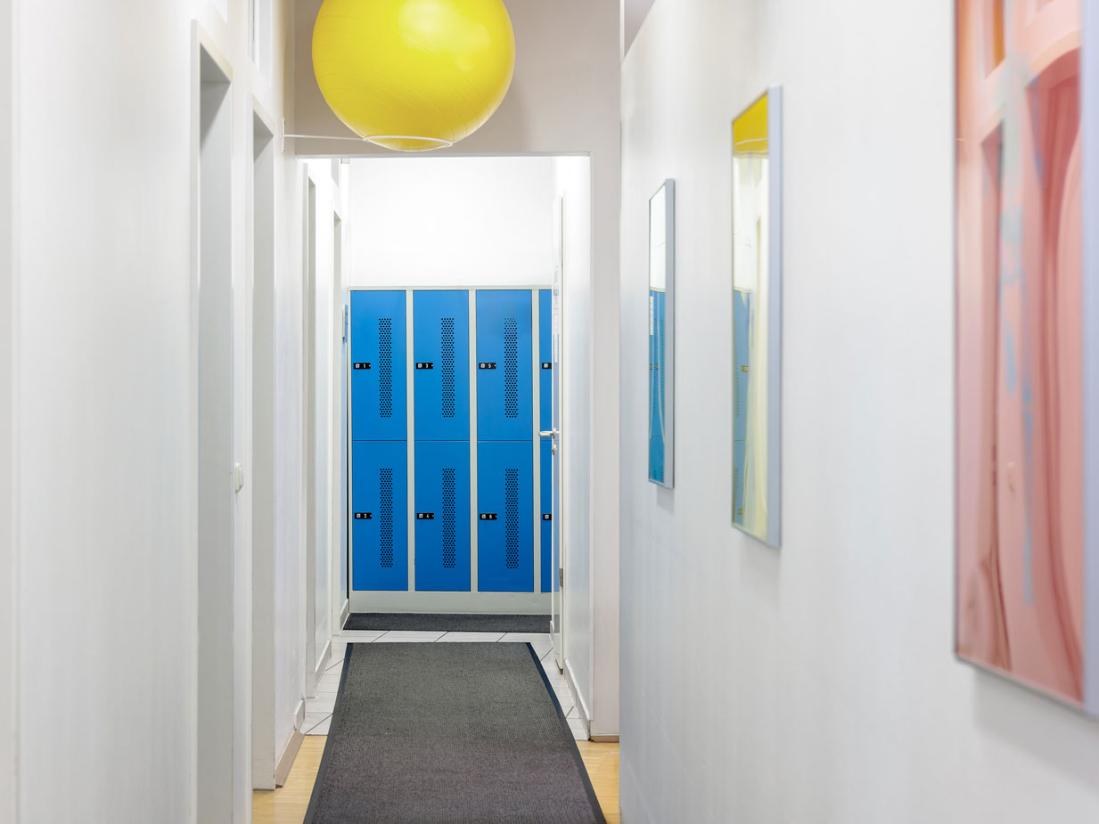 Sie sehen ein Foto der Physiopraxis in Köln. Es zeigt den hinteren Flur der Praxis Wenzel. Weitere Fotos finden Sie über das Menü der Website.
