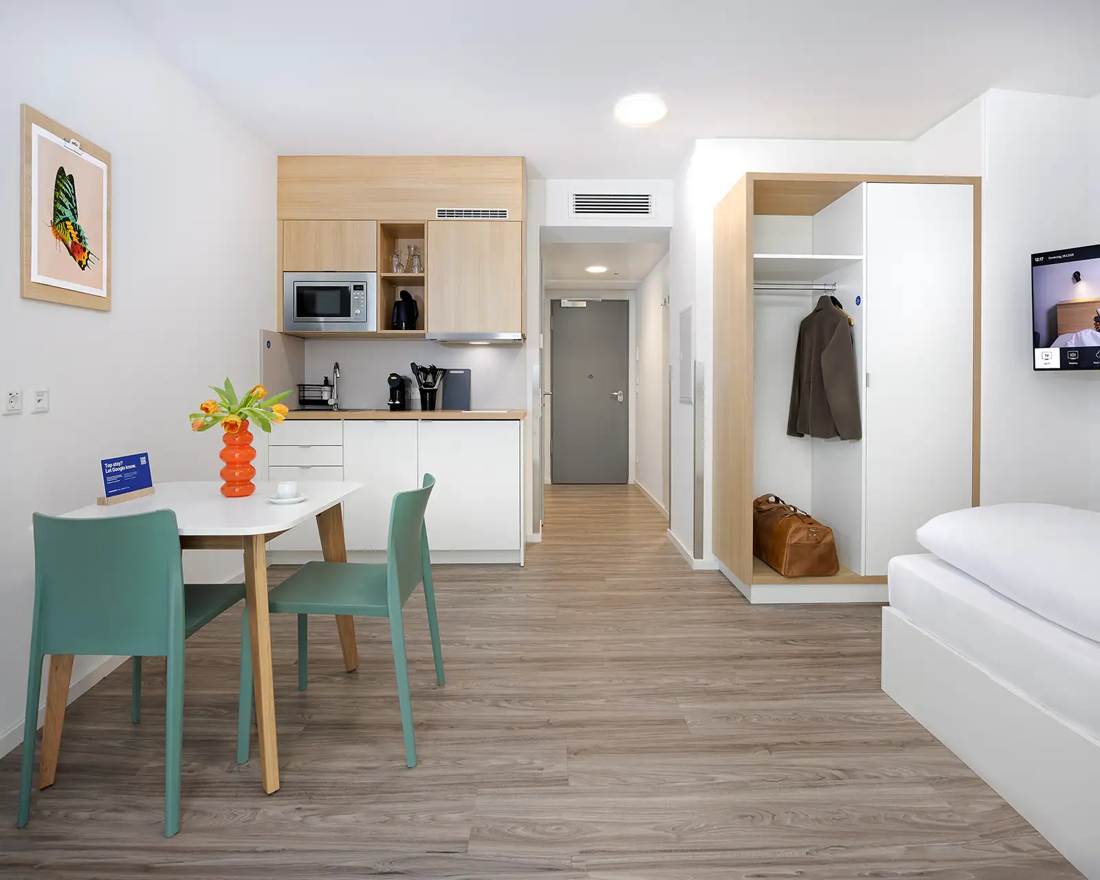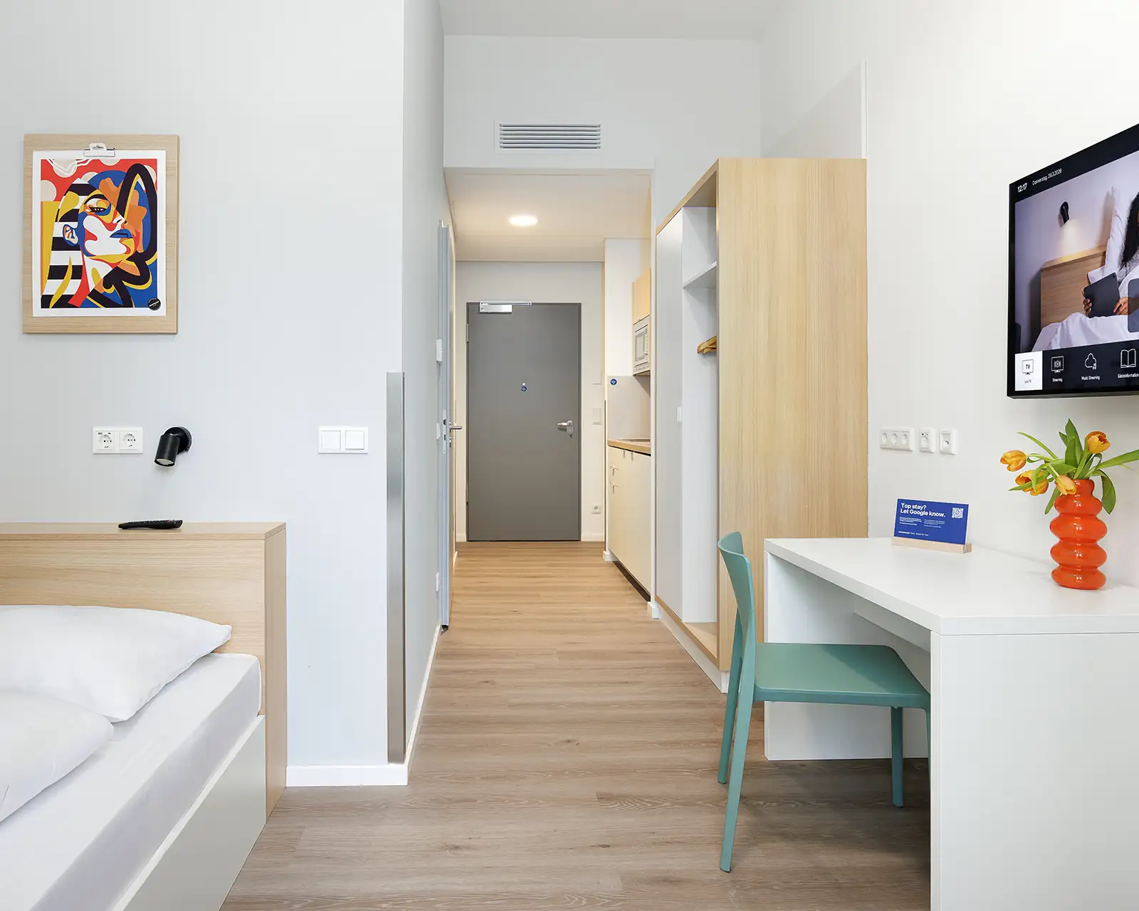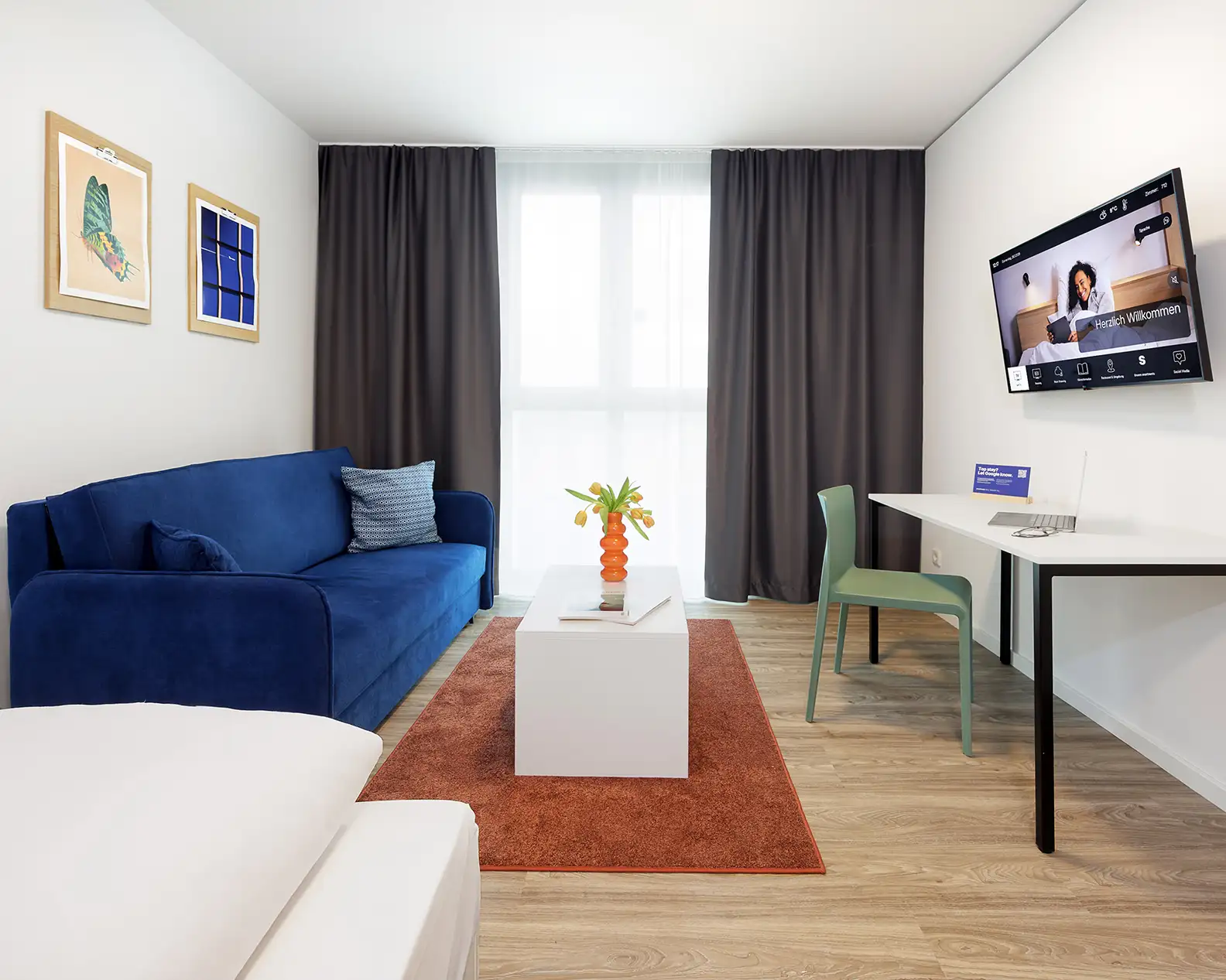 Dies ist eine Beitragsseite, ein Shooting-Bericht über Hotelfotografie im Smartments Airport-Hotel, in Frankfurt. Das Shooting fand im März 2026 statt. Um auf den gängigen Portalen wie Hotel.de, Booking.com und Check24 eine sehr hohe Aufmerksamkeit bereits in der Übersicht zu erhalten, wurden Fotos mit strahlenden Räumen und leuchtenden Farben gewünscht.