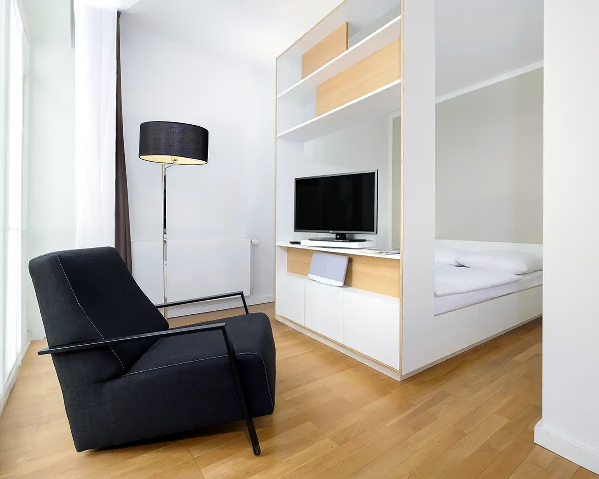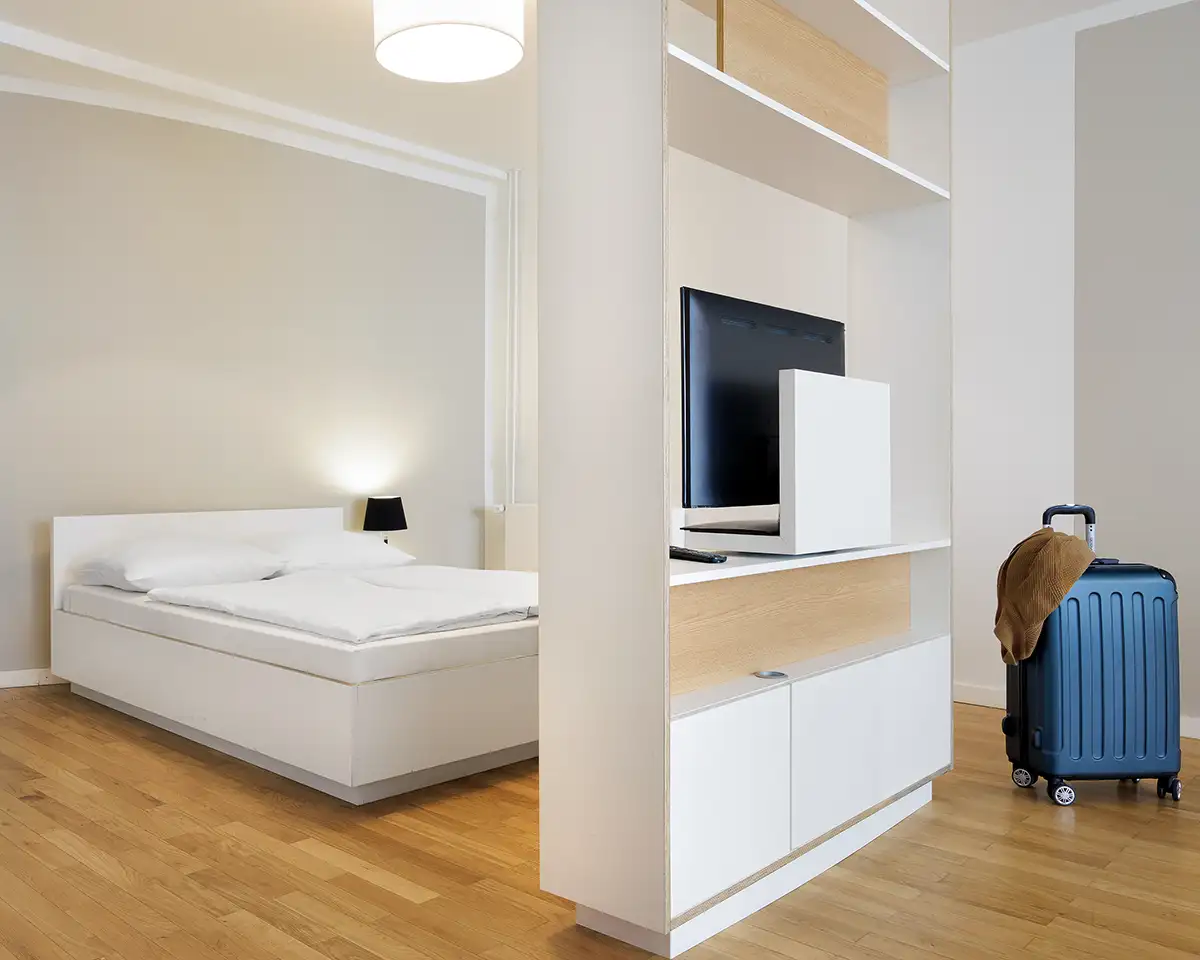 Ein Hotel-Fotoshooting für Smartments. 3 verschiedene Zimmer-Kategorien und eine Außenaufnahme sollten bei dem etwa 3 stündigen Shooting entstehen. Mehr als 40 Hotelzimmer Fotos sind an dem Tag entstanden.