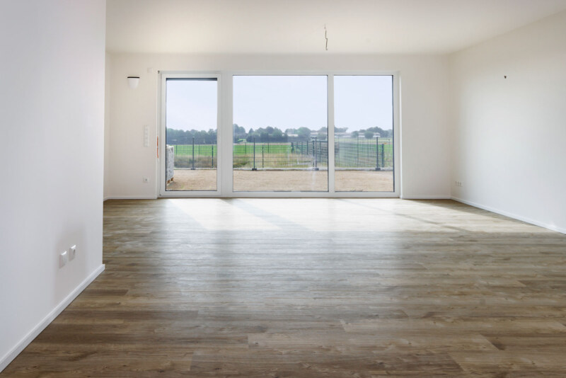 Dieses Bild zeigt den Raum vor der Einrichtung. Sie befinden sich auf der Unterseite zu einem Blogbericht. Das Foto zeigt einen leeren Raum vor der möblierung als Ferienwohnung.