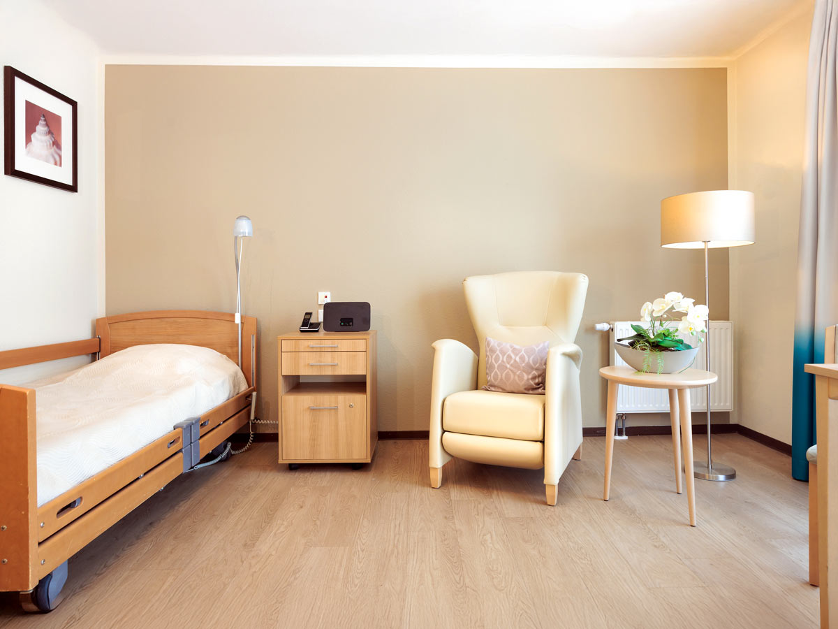 Nach der Neugestaltung einiger Zimmer wurden neue Fotos für die Webseite benötigt. Neben einer Außenaufnahme des Pflegheims entstanden 10 weitere Interior-Fotos, Raumfotos des Komfortzimmers. Aufgenommen wurde hierbei mit Canon R5 und den Objektiven TS-E24mm, RF 10-20, RF 14-35 und RF 28-70 f2. 2 Blitzgeräte von Godox wurden für die Aufnahmen des Zimmers verwendet.